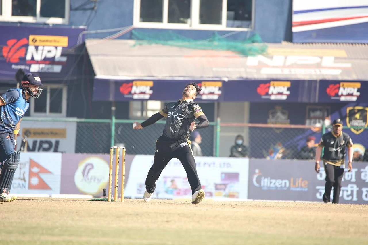 काठमाडौँका लागि कप्तान करन केसी र रसिद खानले ३–३ विकेट लिए । केसीले ४ ओभर बलिङ गर्दै मात्र २४ रन खर्चिए । प्रतियोगितामा उनको विकेट सङ्ख्या ११ पुगेको छ । जेरहार्ड इरास्मस र माइकल लेभिटले १–१ विकेट लिए ।
